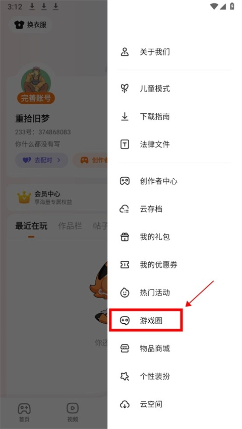 2、点击进入游戏圈;