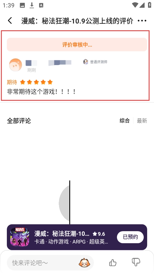 4、提交评价后,该评价将进入审核流程,此时页面会显示【评价审核中...】的提示;待审核通过,其他玩家即可查看我们提交的评价。