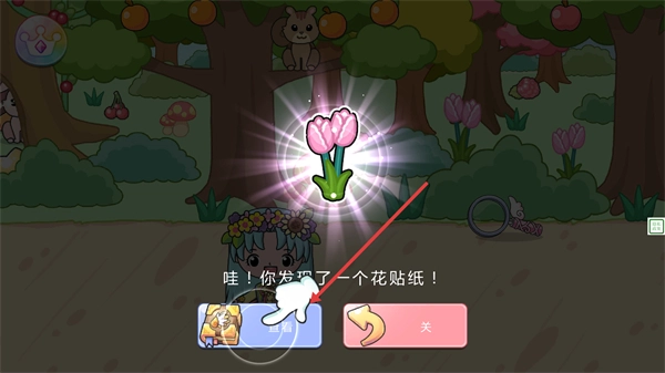 2、放大观察粉色郁金香,发现花贴纸。