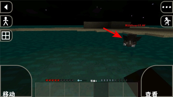 2、游戏中操控角色追击进入水域的生物如野猪,在水域场景中继续发起攻击,完成击败以获取资源。