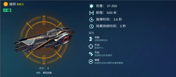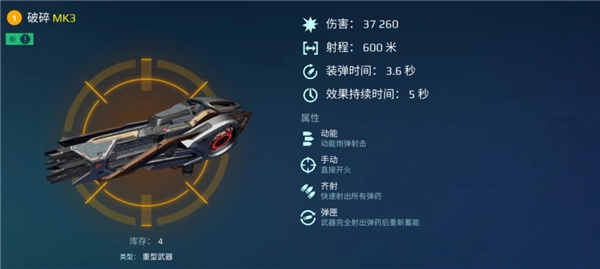 [破碎]的核心优势在于其出色的面板直伤能力、该系列武器独有的“减速”特性,及在250m的优势作战区内,迅速使敌方小型机甲丧失战斗力甚至被摧毁的能力。