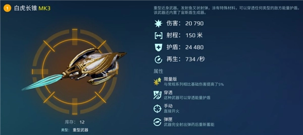 另一款重型近战武器[长锥]/[白虎长锥],直接伤害能力和[破碎]不相上下,还拥有穿透所有能量护盾的特性。不过,它的有效射程只有150米,而[破碎]最远能达到600米,而且[破碎]的减速效果在牵制敌人时更为突出。