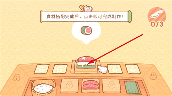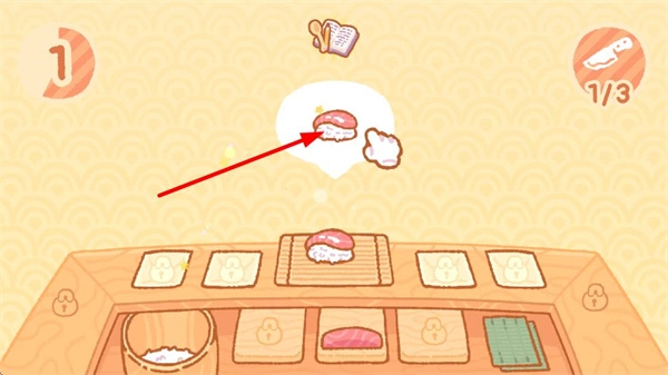 3、当完成一份寿司的制作就会推进关卡进度。