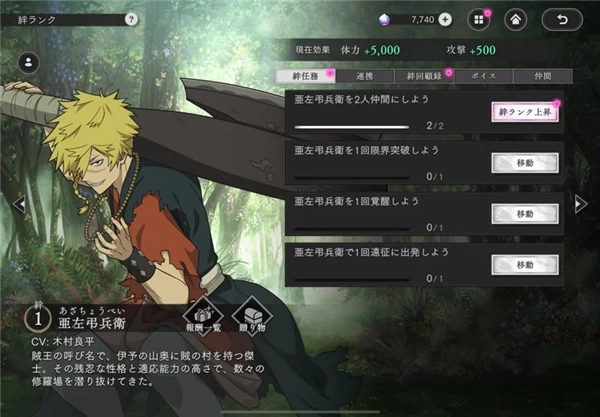羁绊等级提升后将增加体力与攻击力,请务必注意确认。