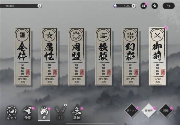 在修炼所中,可使用各玩法中获得的修缮药水,全面提升全体队友的属性。