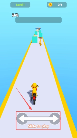 1、进入关卡:在Level 1 0/6 Slide to play界面滑动开始。