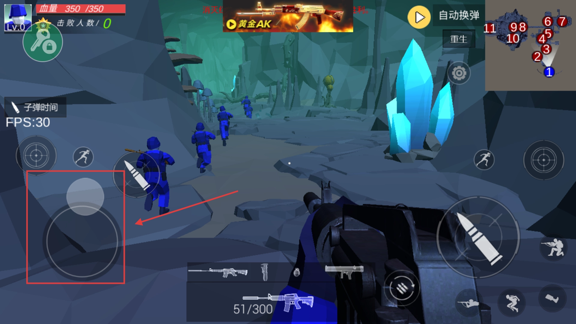 3、战斗过程中,可通过左侧的【移动轮盘】来操控角色的移动方向,借此灵活调整自身所处位置,既能躲避敌人的攻击,也能找到适宜的射击角度。