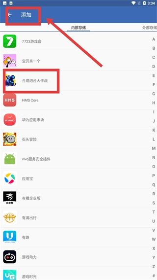 4、添加完成后,目标应用会显示在主界面,可进行点击开始游戏。