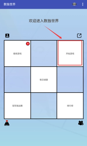 1、点击红框箭头所指的开始游戏按钮,即可进入数独世界。