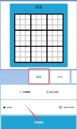 2、选择红框标注的极易难度,点击开始游戏按钮。