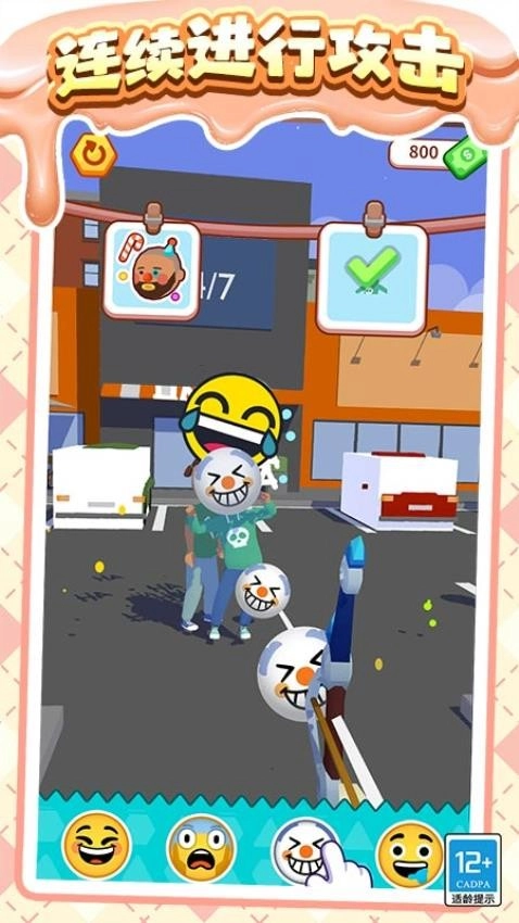 2、只要成功击中角色,就能触发抱头哭泣、互表爱意、小丑出街等各种趣味反应,完成正确的表情拼图,就能获得关卡胜利,顺利通关!