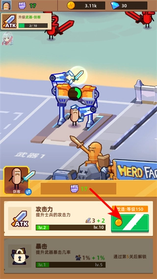 4、在养成界面点击资源按钮消耗金币,可升级士兵的攻击力属性,增强战斗能力以应对更强敌人。