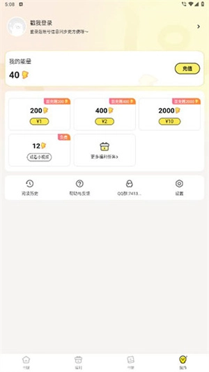 点击底部菜单栏中的“福利”选项,参与任务获取能量值,这些能量可用于解锁章节等内容。