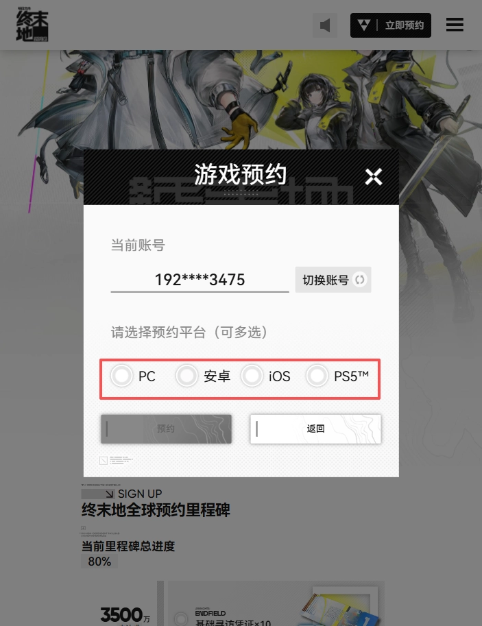 4、根据设备选择参与的测试平台,例如持PC、安卓等。