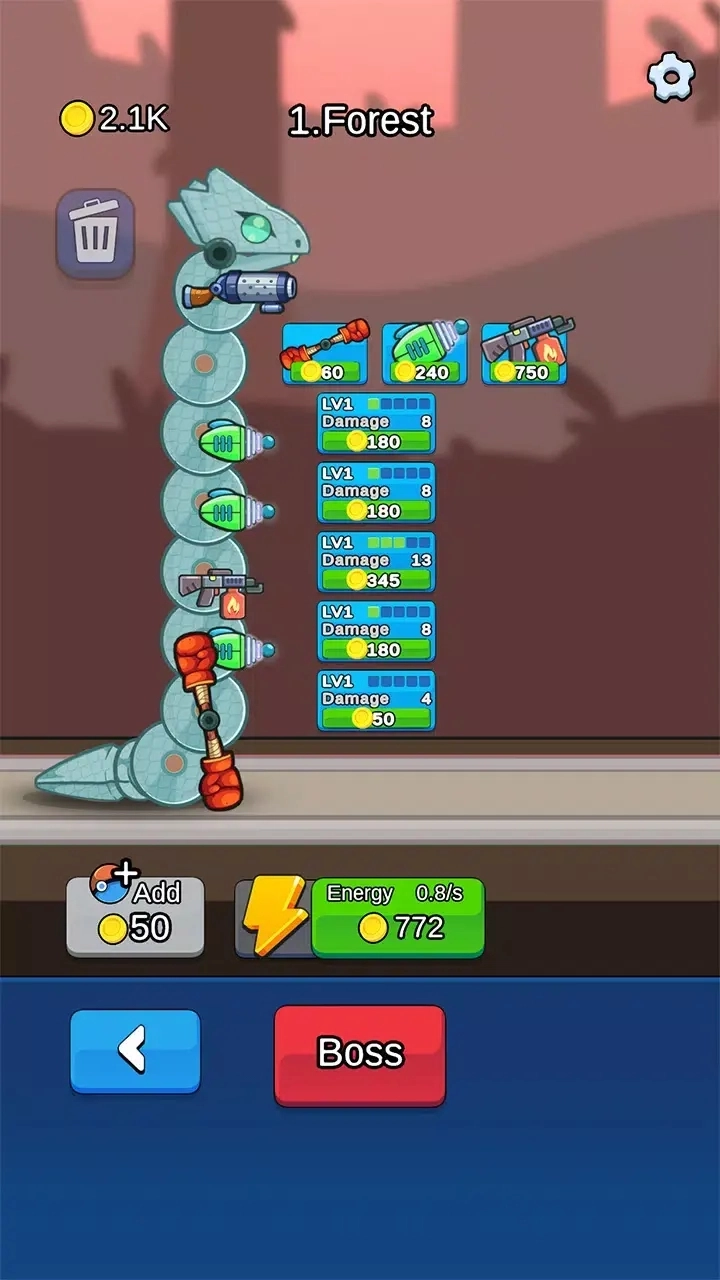 巧妙地在蛇的各个体节上放置武器,打造强大的防御工事。