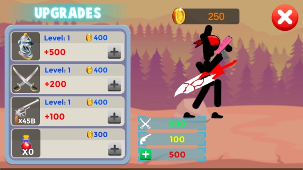 4、在关卡挑战中成功通关所获取的金币,能够用于提升火柴人的各项属性,比如增强护甲的防御能力以及强化武器的攻击威力。