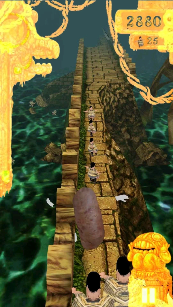 1、玩法与《神庙逃亡》相同,玩家操控焖子躲避各种陷阱,力求跑出更长的距离。