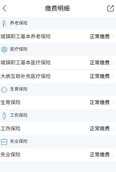 3、之后就可以看到自己的社保信息了,点击缴费明细。