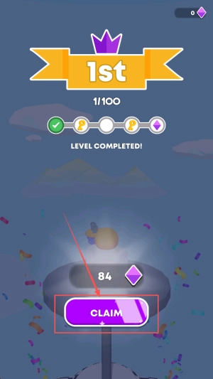 4、领取奖励:出现LEVELCOMPLETED!84点击CLAIM领取奖励。