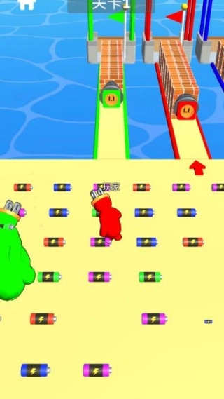 2、在赛道上收集电池来补充电量,同时巧妙设置障碍干扰对手,在确保自身存活的前提下全力冲向终点。