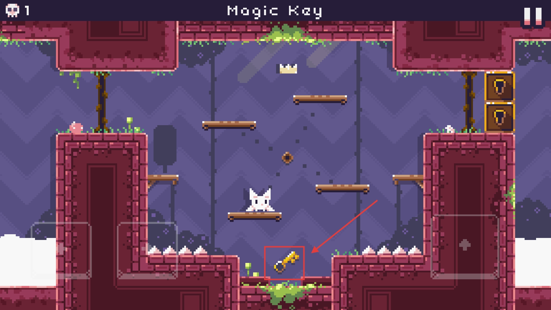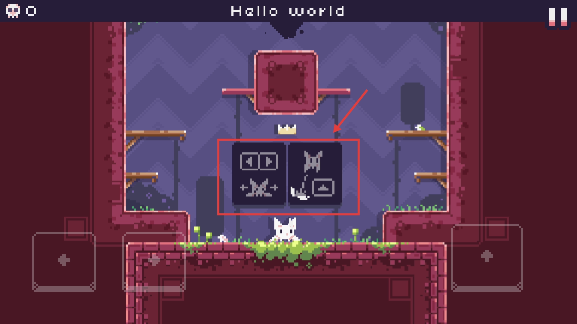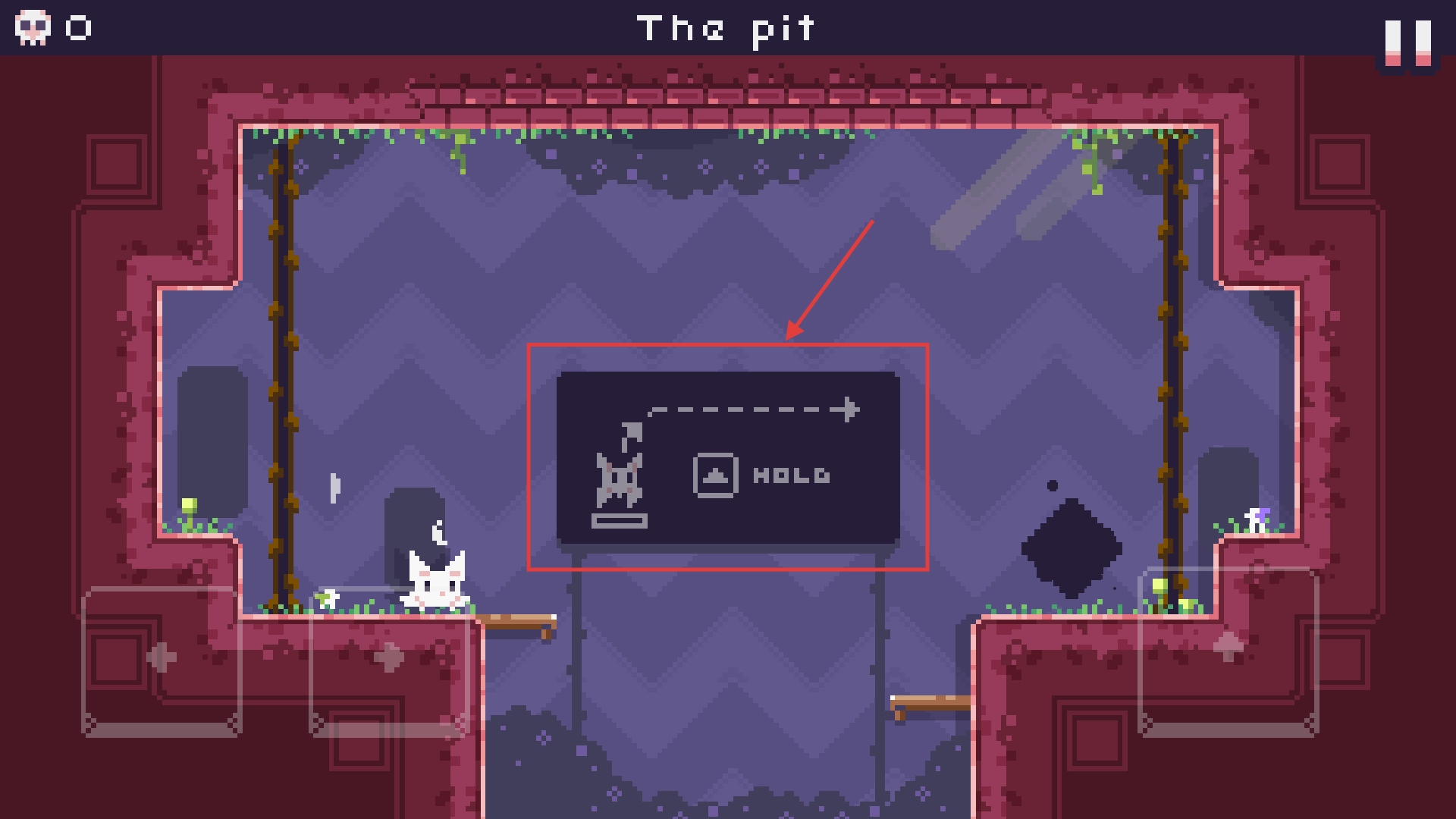 2、用【双箭头】按钮控制移动,【猫】图标按钮触发跳跃,灵活躲机关推进关卡。