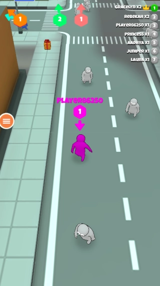 《超级人群城市》是一款以人群集结对战为核心玩法的休闲益智游戏。游戏开始时,玩家仅拥有一支单人队伍,需要在游戏场景中不断招募散落在各处的小人,以此逐步壮大队伍规模。队伍人数是决定对战胜负的关键因素。每个玩家的队伍都配有专属颜色标识,追随者会与玩家保持相同颜色,从而在视觉上清晰地区分敌我双方。游戏操作也极为简便,只需通过虚拟摇杆即可控制角色的左右移动。