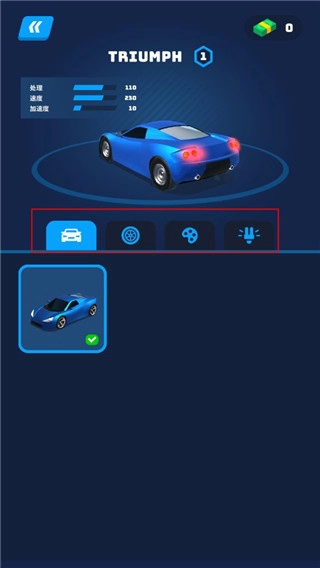 5、在车库里能够对赛车开展强化操作,涵盖引擎、操控、氮气等属性的升级,还可以自主调整配置,使车辆在接下来的关卡中行驶得更平稳、更迅速。