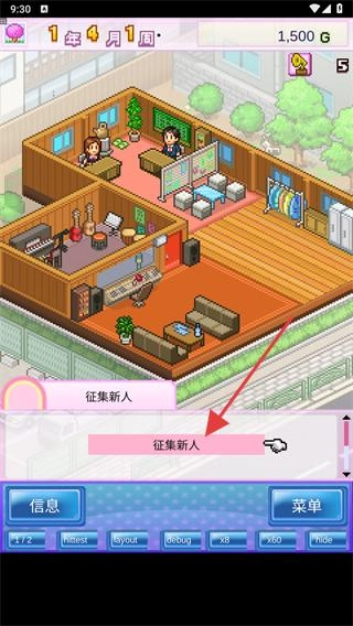 1、进入游戏后玩家将开启工作室的经营,点击下方征集新人选项为工作室招募新人。