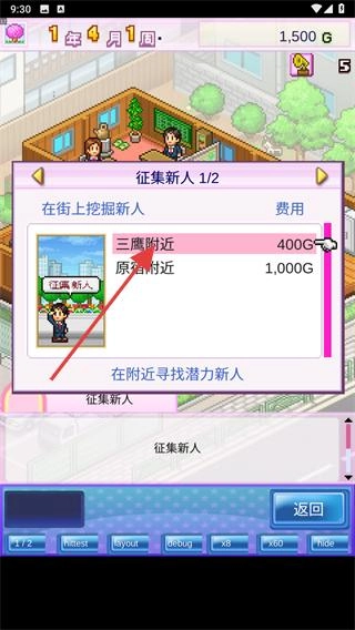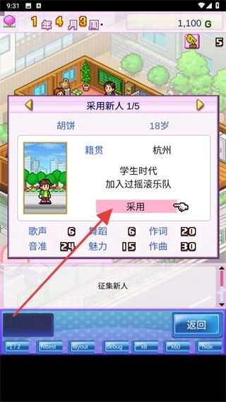 4、招募进来的新人要决定他的目标领域,根据新人的各项属性进行安排。