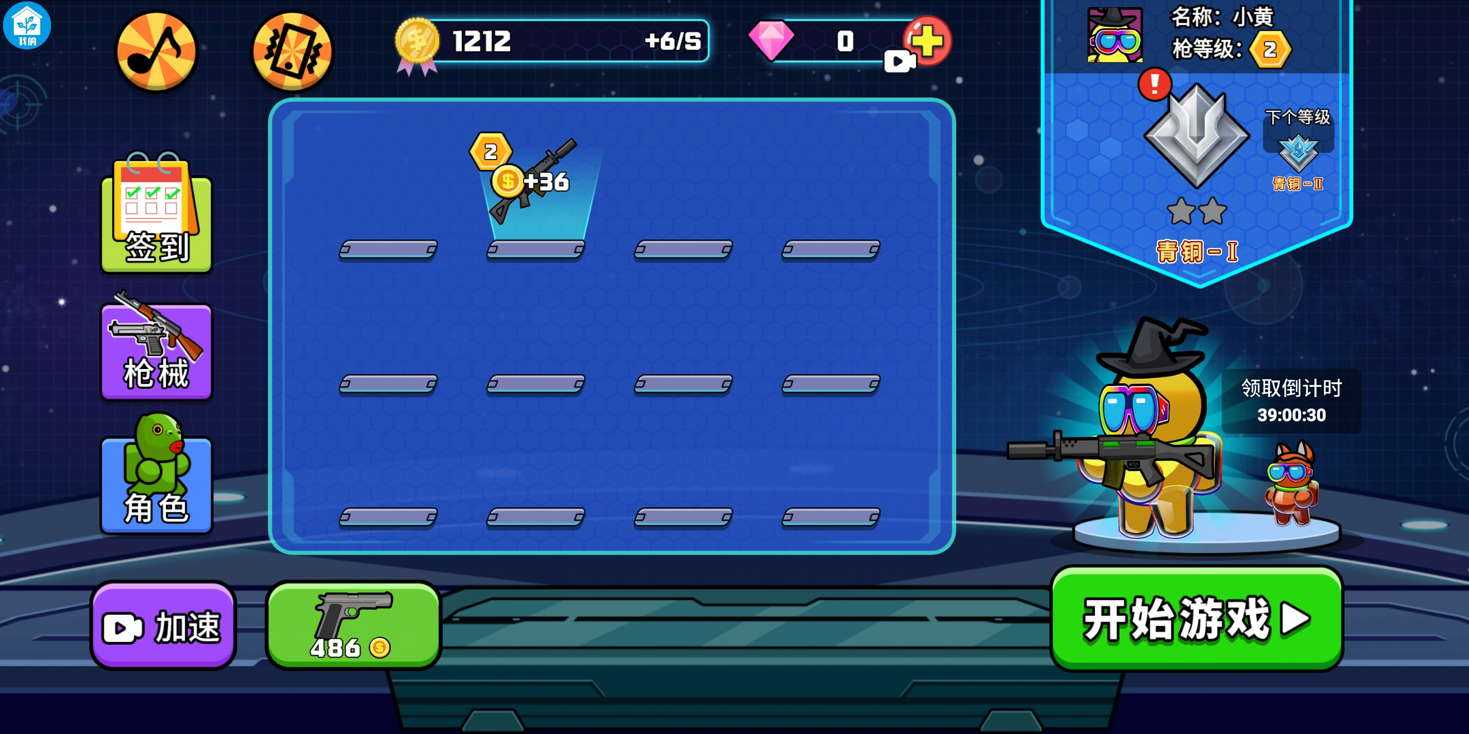在游戏主界面能够购买枪械,而且相同的枪械可以通过合并来升级。点击画面左下角的“开始游戏”按钮,就能进入模式选择界面。