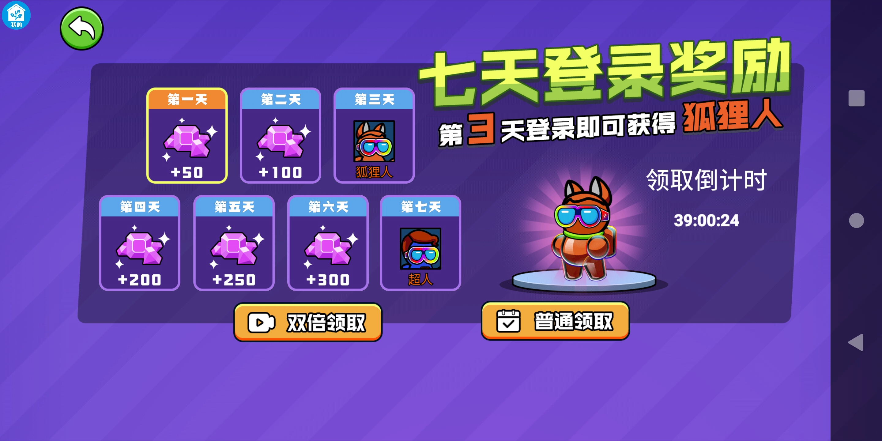 2.此外,在游戏主界面新手玩家还可以领取七日登录奖励哦。