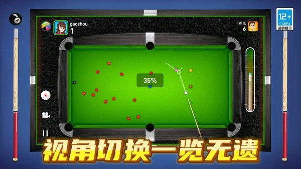 3、支持视角自由切换,玩家可从不同角度清晰观察台球桌上的局势,从而助力制定更优策略。