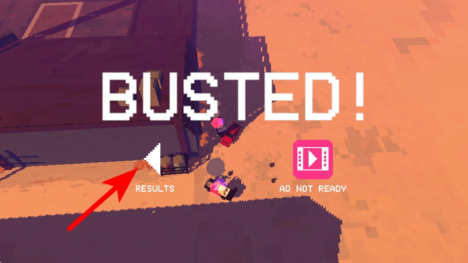 4、当游戏界面显示“BUSTED”(被抓捕)时,点击“RESULTS”按钮可查看本局游戏的详细结果。这一步对于总结游玩经验至关重要,通过分析结果内容,能够针对性地调整后续的驾驶路线规划与躲避追捕的策略,从而有效提升下一局的逃亡成功率与效率。