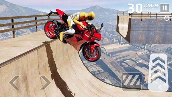 3、自由度极高的操作体验:游戏采用了直观的触屏控制方式,玩家可以通过滑动手机屏幕就可以控制摩托的轨迹方向还可以点击增加加速。