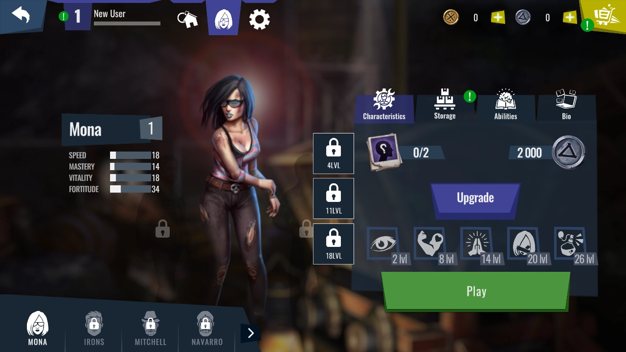 1、4个具有不同能力的幸存者。