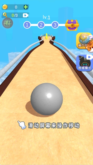 2、通过左右滑动来操控小球的移动方向,向前滑动可让小球加速,需要留意保持右侧的生命值。