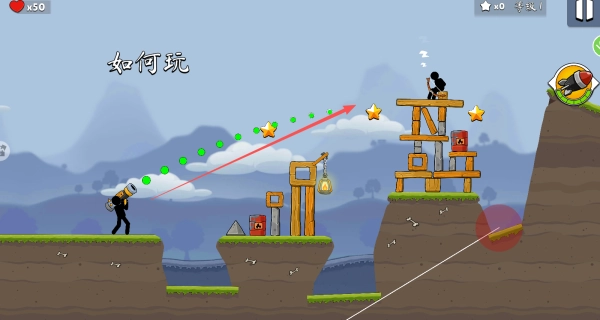 1、观察关卡地形与障碍分布,利用反弹、弹射等物理机制规划轨迹,实现间接命中目标。