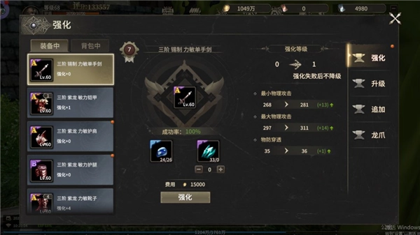 装备养成:强化+镶嵌+黄金套,战力飙升!强化优先级:武器>戒指>防具。