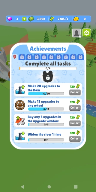 4.另外,在成就面板里,玩家还能领取各类成就奖励。持续建造你的水力发电站,构建专属于你的水电帝国吧!