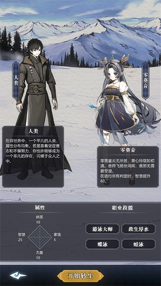 5、转生之旅开启时,玩家可选择身份、职业与携带的灵伴,各分支的可选内容十分丰富;此外还有出生场景的选择,场景对应不同世界线,其中雪山线是当前剧情篇幅最长的线路。