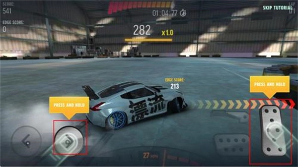 1. 借助虚拟方向盘或重力感应来操控车辆,在进入弯道前完成降档补油操作,通过方向盘与手刹的协同配合实现漂移动作。