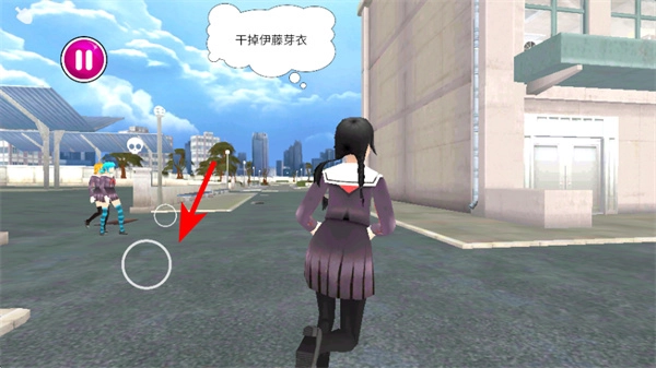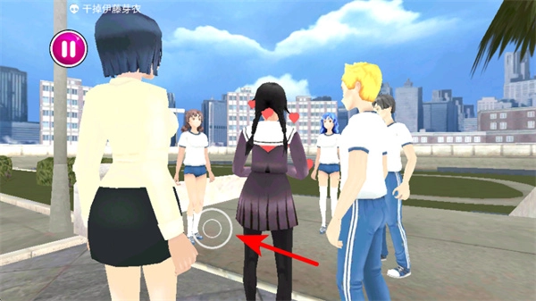 2、进入场景后,通过虚拟摇杆操控角色移动,调整角色的位置,向目标角色如对话对象靠近,推进互动剧情触发条件。