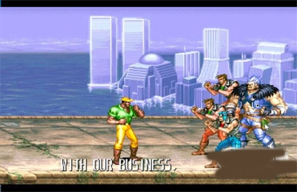 6、关口BOSS变白痴法!!这是我自己琢磨出来的玩法。首先得想办法让BOSS那双大刀都落在屏幕场景的中线上(要是能叠在一起就更妙了),此时BOSS已经被踹出屏幕外,你赶紧把自己的身位移到屏幕最边缘的那条横线上——你会发现BOSS突然就像失去了所有技能,只会傻乎乎地从屏幕外慢慢走出来,既不会跳,也不会碎步移动,哈哈!这时候你折回去再把他踢出去,他就又会像个白痴一样慢慢走回屏幕,接着你再踢……就这么反复直到把他弄死!!不过要注意,千万别上下移动,一旦离开这条横线,BOSS立刻就又活蹦乱跳恢复原样了。