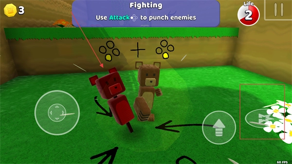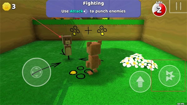 2、跳上平台之后,点击右侧的攻击按钮,可操控小熊攻击敌人。