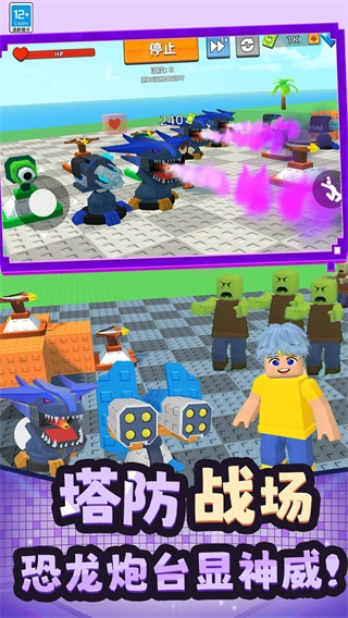 3、可以自己拼装“恐龙风格”的炮台,把这些霸气的史前生物变成强力武器,帮你看守基地。