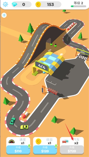 2、可以通过金币购买更多的汽车或者用来升级场地