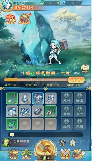 2、通过分解不需要的装备,获得灵力和灵石
