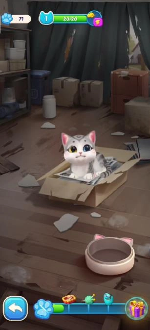 3、家园改造玩法,从老旧房屋起步,一步步进行房间的布置与升级,让家园洋溢温馨与美丽,与此同时记录小猫的成长历程。
