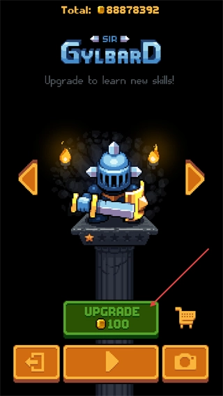 1、消耗100金币为【SirGylbard】角色进行升级,强化其技能来提升在地牢探索时的生存能力,为接下来的挑战预先积累有利条件。