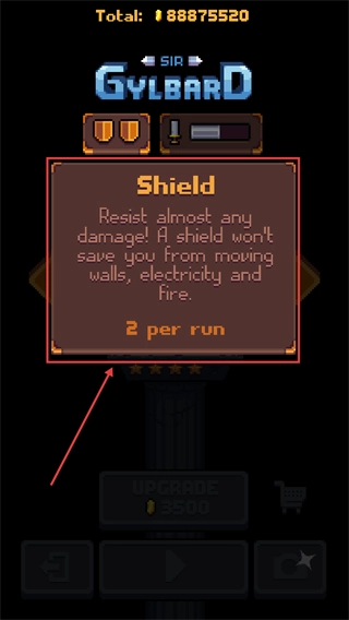 2、获取【Shield】道具,该道具可抵御大部分伤害,不过对移动墙、电以及火类伤害无效;每次在地牢探索过程中仅限使用2次,需要合理规划好它的使用时机。